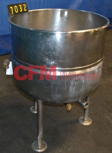 40 gallon Bardeau stainless steel steam jacketed kettle, model number F-40L, serial number 1716-OH-01, National Board number 2074, 26" diameter x 22" deep, 1-1/2" Tri-Clover side bottom discharge, built in 1980, all stainless steel construction.