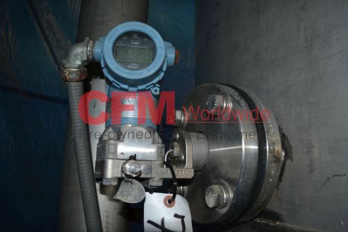 400 gallon stainless steel product holding tank, 48" diameter x 45" tall tank with additional 20" sloped bottom, 6" I-line product infeed, 11" wide x 4" tall flanged center bottom discharge, pressure transmitter, 5 HP electric motor gearhead mixer drive, 1800 RPM, wired 230/460/3/60, 140" tall overall, all stainless steel construction.