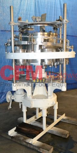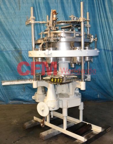 Votator model P-6-G six station rotary piston filler, set up for 603 x 700 cans, star infeed and discharge, counter-clockwise rotation, with can trip and valves, stainless steel contact, painted mild steel frame, requires pistons.