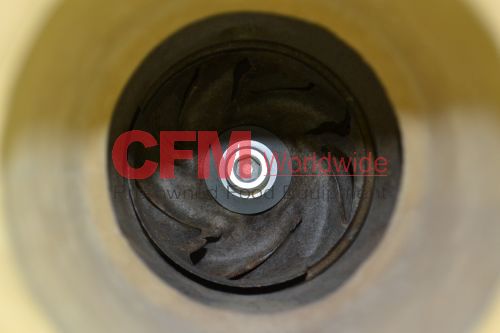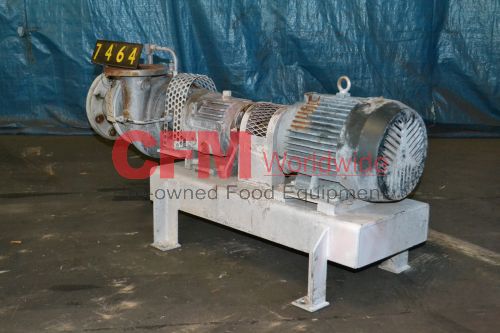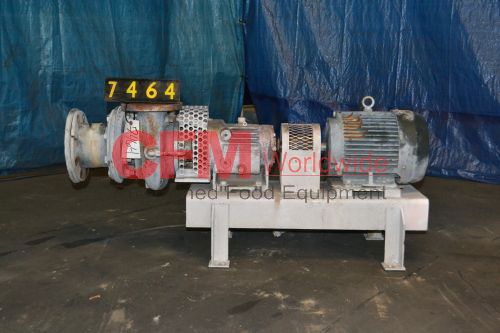 Cornell mild steel water pump, 6" flanged product infeed, 3" flanged product discharge, 3 HP electric motor direct drive, 1760 RPM, wired 460/3/60, mild steel construction, on a stainless steel base.