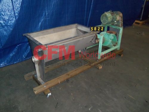 Fairbanks-Morse hydro food pump, 20" wide x 38" long x 16" deep stainless steel vortex hopper, 4" flanged pump infeed, 3" flanged pump discharge, 5 HP electric motor belt drive, 1735 RPM, wired 460/3/60, stainless steel and mild steel construction.