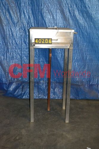 Stainless steel parts washer, 20" wide x 20" long x 1-1/2" deep perforated wash tray, hinged lid, 60" infeed height, 1/2" threaded spray bar connection, 1" threaded drain, all stainless steel construction.