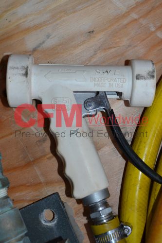 Streamline model SM 2000 hot water mixing station, 3/4" threaded steam infeed, 3/4" threaded water infeed, 3/4" threaded hot water discharge, 150 PSI maximum operating pressure, steam and water control valves, approximately 20' 3/4" hot water hose with spray nozzle, stainless steel and bronze construction.