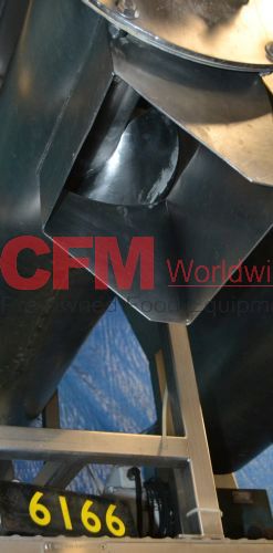 Weigh-Tronix weight cell feeders, model number DSFS3030A-01, serial number 21631, 1000 pounds maximum capacity, 12" wide x 12" long infeed chute, pneumatic diversion flap to divert product to two 7" wide x 12" long hoppers, hoppers feed to 12" diameter x 52" long screw conveyor, 8" wide x 11" long discharge to conveyor, 2 each 1 HP electric motor V-belt drives, 1725 RPM, wired 208-230/460/3/60, includes Weigh-Tronix WI-130 control panel, 111" overall infeed height, all stainless steel construction.